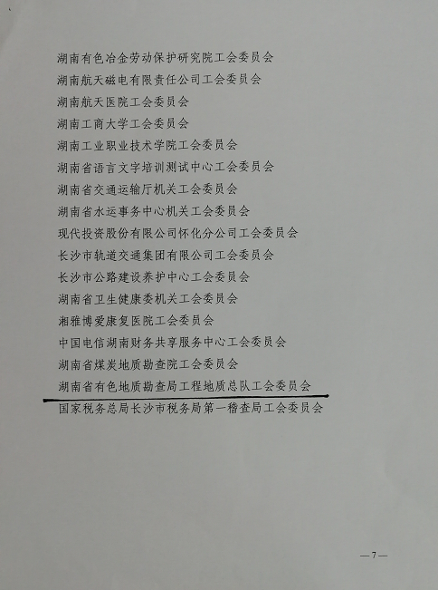 日前,由湖南省总工会组织开展的模范职工之家评选结果揭晓,湖南省有色地质勘查局工程地质总队工会委员会荣获“湖南省模范职工之家”称号。这是继2013年获评长沙市“模范职工之家”之后,我队工会获取的一项更高殊荣。