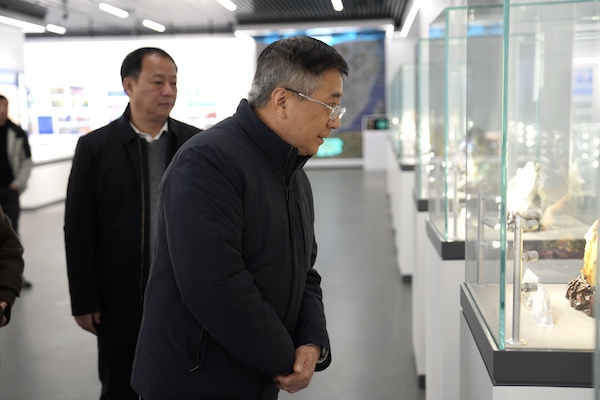 学术报告会前,王焰新还参观了湖南地质展厅,了解了湖南地质70余年来的主要成就与发展历程。