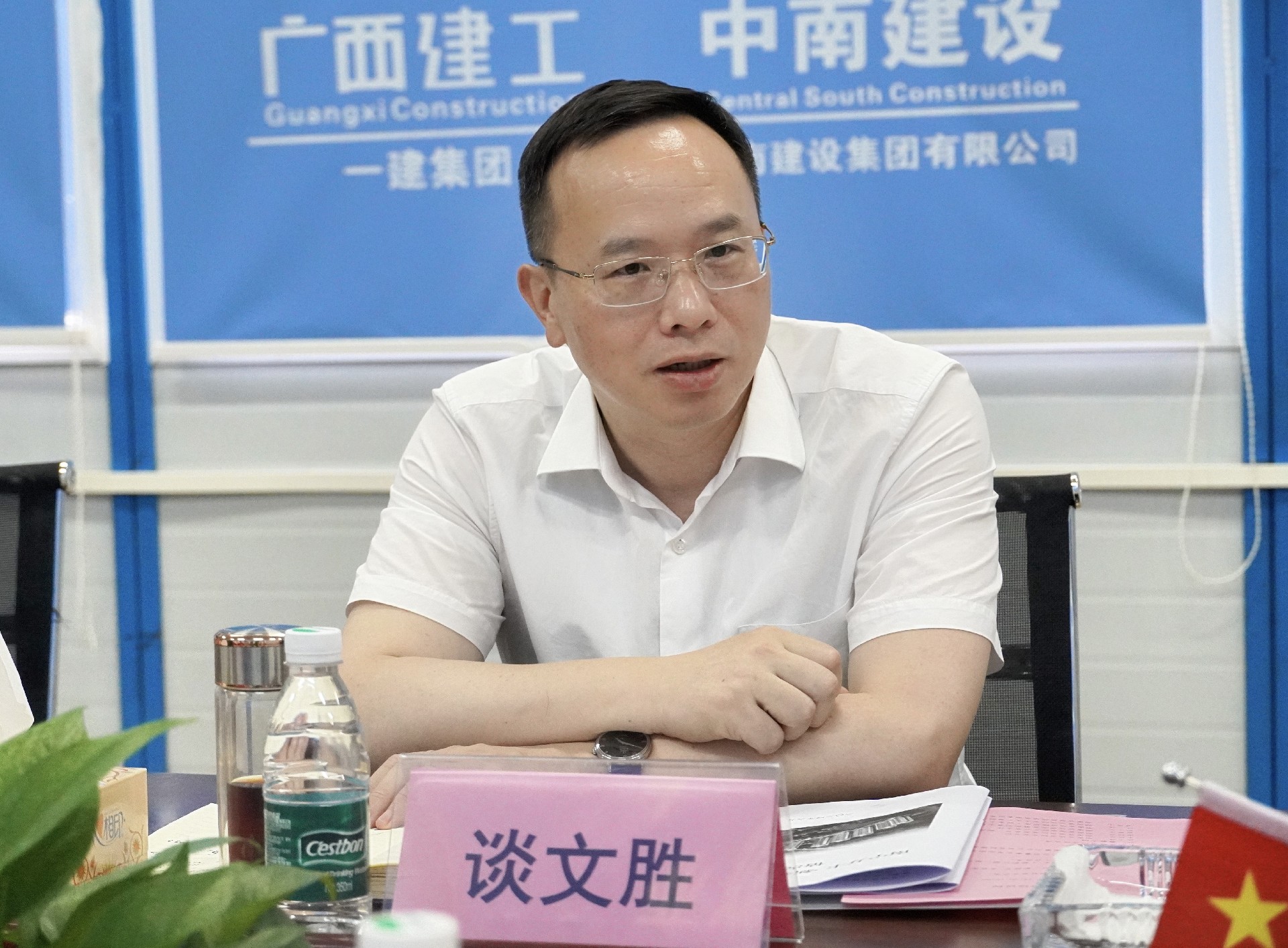 谈文胜一行先后来到项目建设工地、职工食堂、职工宿舍、党建活动室等地,认真查看并详细了解了项目施工进度、基层党建、安全生产、技术应用、职工生活住宿等情况,现场提出安全生产隐患整改意见。随后组织召开了项目座谈会,听取项目各项重点工作情况汇报,研究部署下阶段工作任务。集团公司党委书记、董事长申志刚代表项目部做工作情况汇报,广西建工一建集团第六分公司总经理高长亮,湖南基础公司总经理凌刚作了补充情况说明。与会人员围绕项目管理、安全生产、科技创新等内容开展座谈交流。