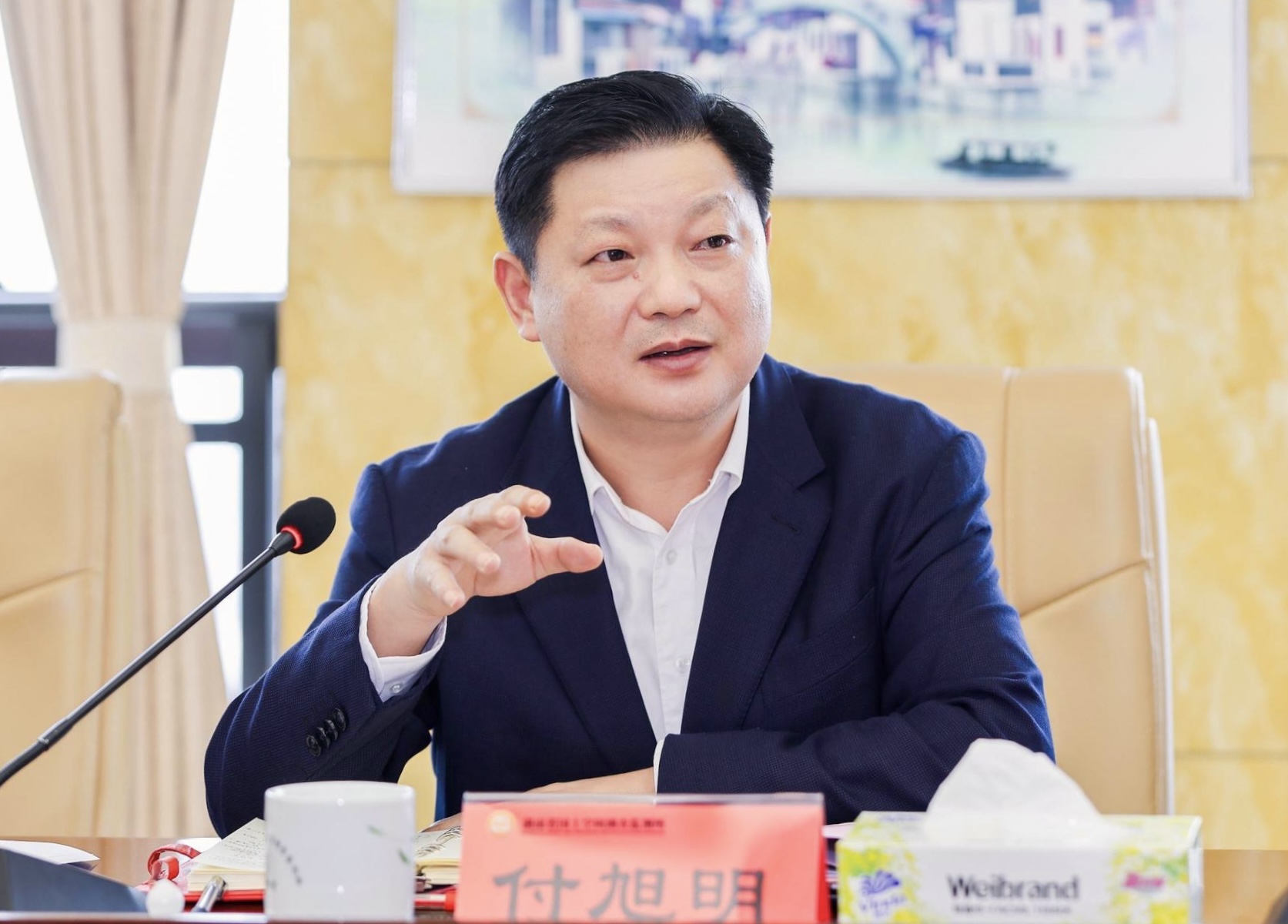 10月29日上午,长沙经开区党工委书记、长沙县委书记付旭明,长沙县委副书记、县长陈永高一行到省地质院有色地勘大厦会商交流并召开现场办公会,省地质院党委书记谈文胜出席并讲话。省地质院党委委员、纪委书记王惜珍,省地质院党委委员、副院长全铁军,长沙县委常委、县委办主任卢铓,县人民政府党组成员、副县长吴正华参加。